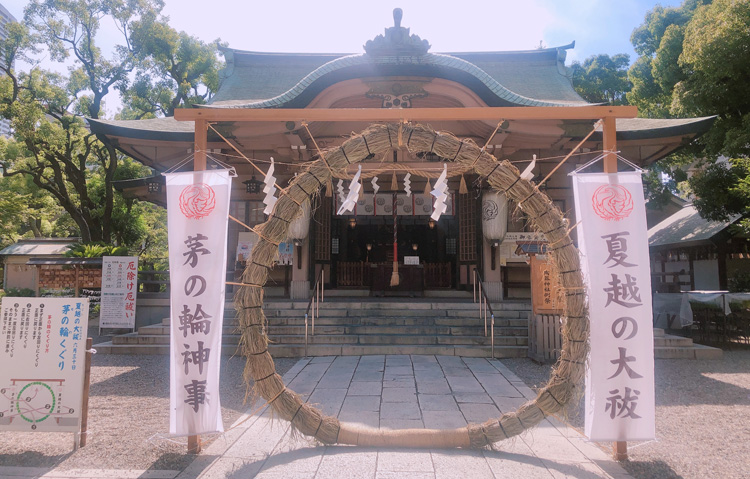 神社境内に設置された茅(かや)で作れた大きな輪をくぐることにより、無病息災や厄除け、家内安全を祈願します。